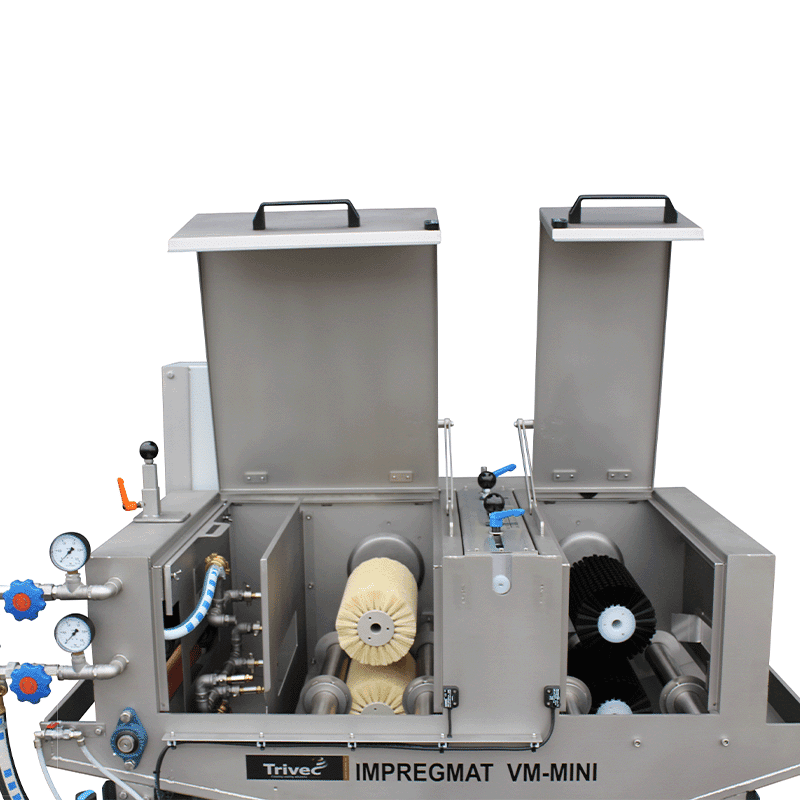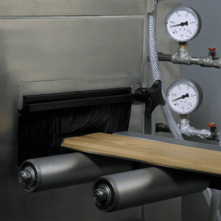 Dit systeem is zo ontworpen dat de borstels de verf/beits nauwkeurig en gelijkmatig over het hele oppervlak verdelen. De machine wordt gebruikt voor het behandelen van gevelhout, Zweeds rabat, terrashout, balken, steigerhout, en meer. Optioneel leverbaar met in-/uitvoersysteem.